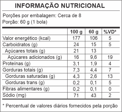 Ingredientes: Água, leite em pó integral, açúcar, xarope de glucose, gordura vegetal, pó sabor artificial milho verde (corantes: amarelo tartrazina e amarelo crepúsculo), estabilizante e emulsificante em pó para gelados comestíveis (emulsificante: monoglicerídeos de ácidos graxos destilados, espessantes: carboximetilcelulose (CMC), goma guar, carragena e goma xantana, estabilizante: tripolifosfato de sódio), emulsificante em gel (emulsificantes monoglicerídeo destilado de ácidos graxos, monoestearato de sorbitana e estearato de potássio), líquido sabor artificial milho verde (corante amarelo tartrazina). ALÉRGICOS: CONTÉM DERIVADOS DE SOJA E LEITE. PODE CONTER LEITE, CASTANHA DE CAJU, AMENDOIM, AVEIA, CENTEIO, SOKA E TRIGO. CONTÉM LACTOSE. CONTÉM GLÚTEN.